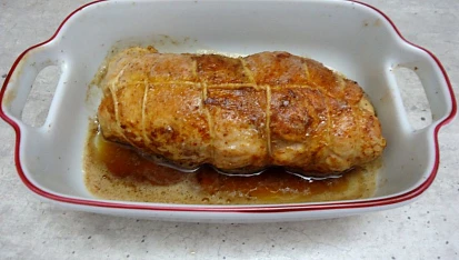 a k jedné straně položíme vinnou klobásu. Krok 2: Pevně srolujeme a svážeme kuchyňským provázkem. Povrch okořeníme, osolíme dle chuti a lehce poprášíme moukou. Krok 3: Do rozehřáté pánve dáme máslo, opečeme rolku, aby se zatáhla a přendáme v zapékací misce do trouby cca 15-20 minut. Krok 4: Vyndáme rolku, zabalíme do alobalu a necháme odpočinout, poté nakrájíme na plátky a podáváme s bramborovou kaší nebo šťouchaným bramborem. Doplníme salátem dle vlastní chuti
