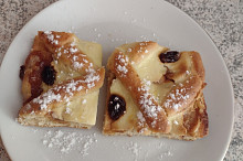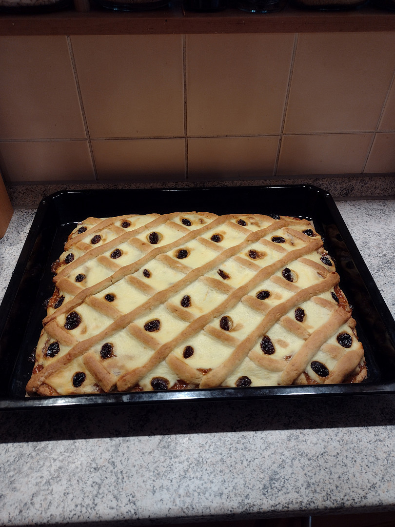 Mřížkový koláč s tvarohem z bramborového těsta.