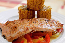 Treska zapečená s rajčaty a cibulí