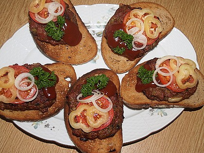 Krok 3: V topinkovači opečeme chleba a karbanátky na něm nazdobíme. Jsou šťavnaté a nadýchané.