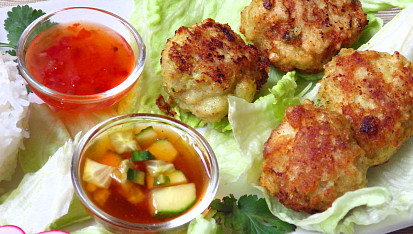 Utvoříme menší placičky a osmažíme v rozpáleném oleji. Krok 2: Omáčka: sójovou omáčku promícháme s lžící cukru, limetkovou šťávou, chilli a jemně nakrájenou okurkou, Krok 3: Placičky podáváme s omáčkou a nejlépe s rýží.