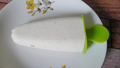 Krok 3: Pokud chceme nanuky, tak hmotou naplníme nanuková tvořítka a vložíme na několik hodin do mrazničky. Nanuky jsou vláčnější konzistence. Z tohoto množství jsou 4 kusy, záleží na velikosti tvořítek.