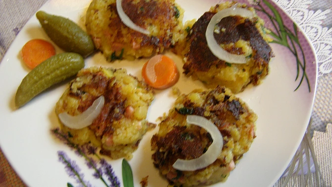 Bramborové placky jsou vylepšené medvědím česnekem. Je možné je vyzkoušet nejlépe na jaře, v době sezóny medvědího česneku. Výborný nápad na zpracování brambor z předešlého dne. Placičky potěší chutí i jednoduchostí přípravy.