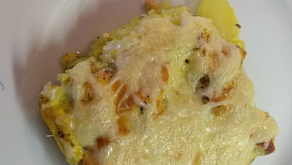 Krok 6: Poté vyndáme z trouby, posypeme nastrouhaným sýrem a dáme bez poklice zapéct na 20 minut.