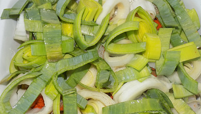 Krok 4: Navrstvíme druhú polovicu nakrájaného póru.