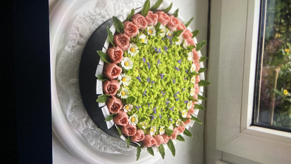 Krok 10: Celý dort obmažeme krémem.