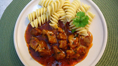 Cuketa na kari a česneku s nakládanou červenou paprikou