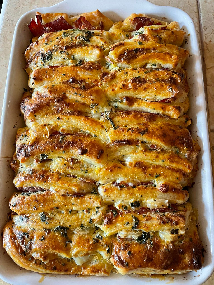 Trhací chléb se sýrem a slaninou