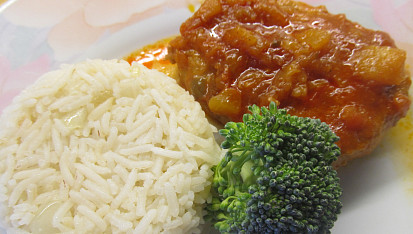 Kuřecí prsa s blanšírovanou brokolicí a hráškovou rýží