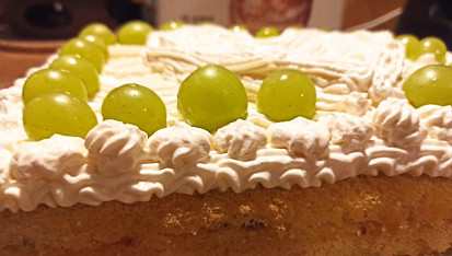 Do mísy dáme mascarpone a přidáme cukr, přilijeme smetanu a ušleháme dotuha. Krok 4: Povrch pokapeme rumem a nakrájíme na stejně velké dílky, které ozdobíme krémem a libovolným ovocem.