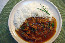 Kousky vepřové krkovičky na cibuli, česneku a kmínu