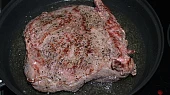 Krok 2: Potom maso zprudka opečeme na pánvi ze všech stran. Maso se na délku trochu smrskne, ale na výšku naopak zvedne.