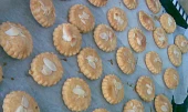 Krok 1: Zpracujeme těsto, necháme hodinu odpočívat, pak vyválíme na 5mm a formičkou vykrajujeme různé tvary, které potřeme rozšl. vejcem a sypeme mandlemi, kmínem, mákem apod.
