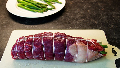 Rolovaný flank steak s chřestem a holandskou omáčkou sousvide
