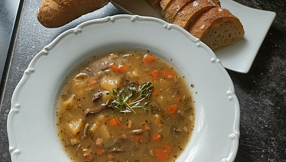 Krok 4: V hrnečku rozkvedláme mouku s trochou vody do hladka a vlijeme do polévky. Necháme provařit cca 30 min a podáváme s domácím pečivem.