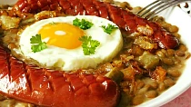 Vepřové nudličky v pikantní omáčce s houbami a sýrem