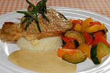 Vepřová kotleta, kuskus a grilovaná zelenina