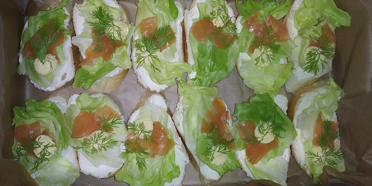 Mini chlebíčky s lučinovou pomazánkou a s uzeným lososem