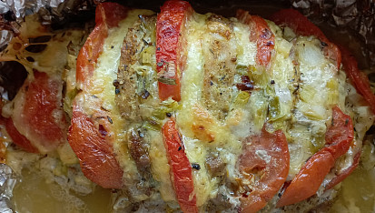 Vyzkoušejte tento vynikající recept z vepřového masa. Maso plněné rajčaty, plátkovým sýrem a mozzarellou posypané jarní cibulkou stačí zapéct v troubě. Příprava je snadná a maso vypadá díky nakrojení do harmoniky pěkně na pohled.