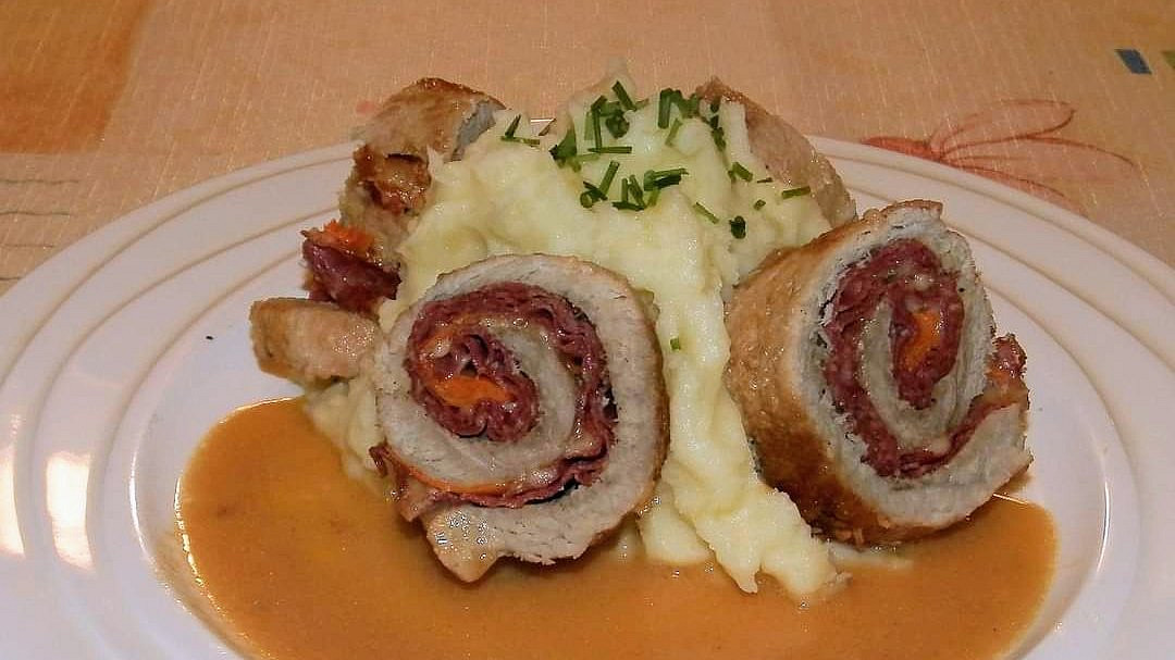 Vepřové roládky s chorizem a zeleninovou omáčkou