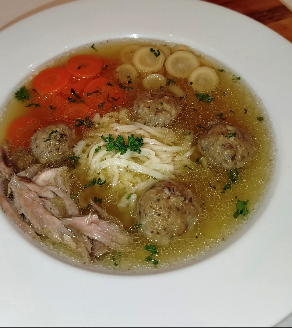 Silný kuřecí vývar s drůbežími knedlíčky s libečkem