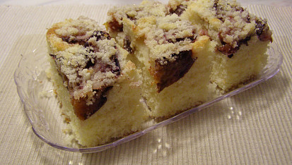 Krok 2: Po řádném promíchání těsto nalijeme na vymazaný a vysypaný plech, posypeme ovocem a drobenkou a pečeme ve středně vyhřáté troubě.