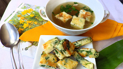 Svítek do polévky s medvědím česnekem a parmezánem