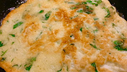 Krok 3: V pánvi rozehřejeme olej (ne úplně rozpálit) a rozetřeme opatrně těstíčko. Opečeme z obou stran dozlatova.