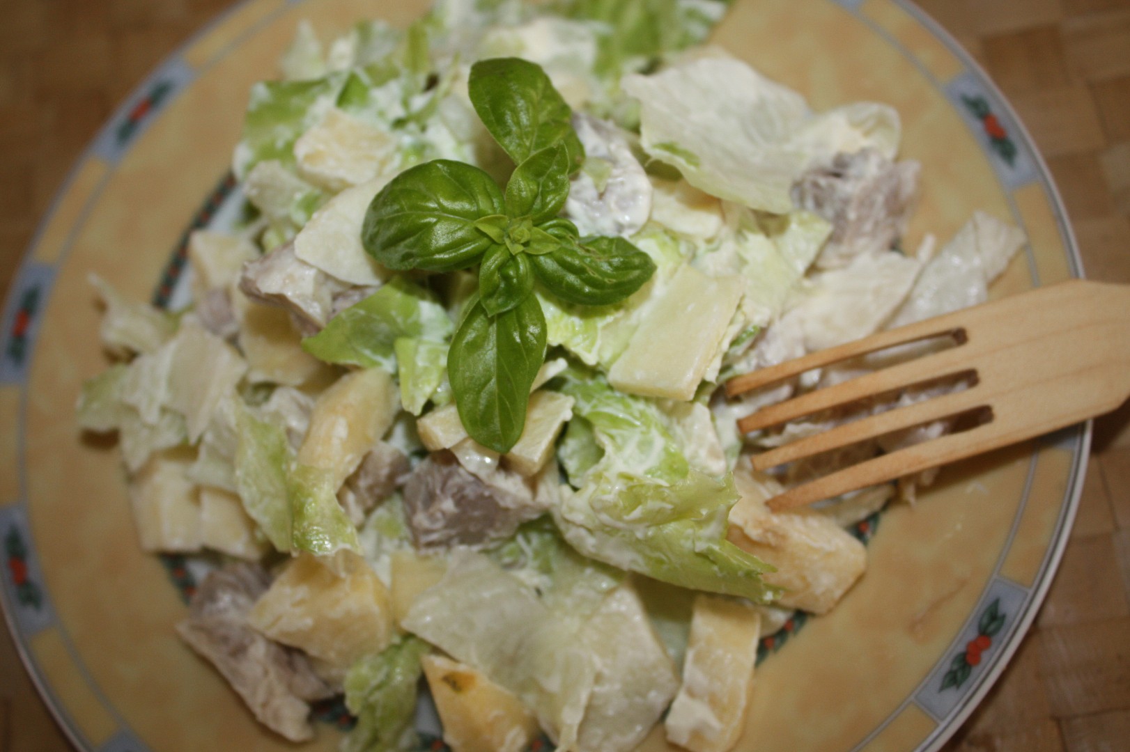 salát s vepřovým masem,
