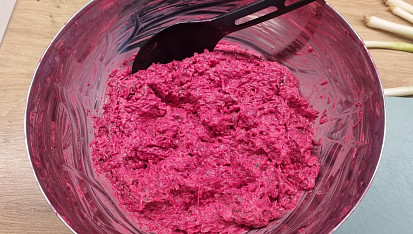 Jednoduchá a zdravá pomazánka ze strouhané vařené červené řepy a sýra chutná nejvíce na krajíčcích čerstvého tmavého pečiva. Kdo má rád, dozdobí si namazaný krajíček lístky oblíbených bylinek nebo salátu.
