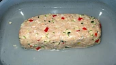 Krok 3: Z hmoty vytvoříme šišku, přendáme ji do pekáče a podlijeme vodou. Vodou potřeme také povrch sekané a uhladíme ji. Pekáč vložíme do předehřáté trouby a pečeme při 180 °C asi 60 minut.