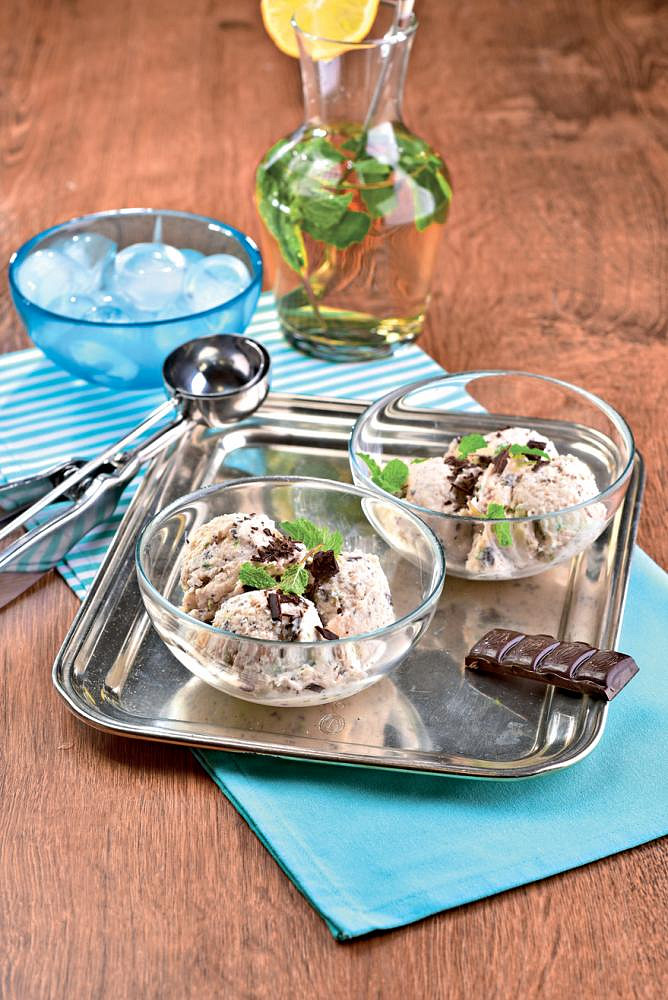 Voňavá máta a hořká čokoláda tvoří osvědčenou kombinaci, která skvěle chutná i ve zmrzlině. Připravíme ji jednoduše i bez zmrzlinovače. Výborná zmrzlina přijde v horkých dnech vhod jako dobré osvěžení.