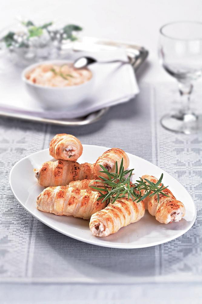 Kremrolky s pomazánkou ze sušených rajčat a rozmarýnu