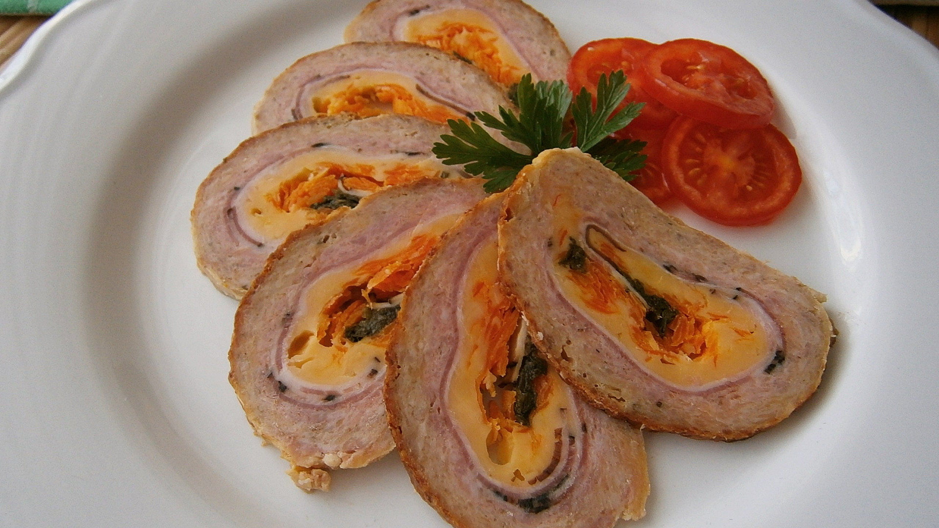 Kuřecí roláda, plněná medvědím česnekem, sýrem a mrkví, pečená ve vepřové bláně, udělá velkou parádu při svátečním či nedělním obědě. Příprava je sice trochu pracnější, ale výsledek stojí rozhodně za to.