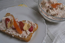 Pomazánka se šunkou, křenem a čerstvým krémovým sýrem s bylinkami