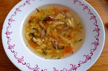Kuřecí vývar s kořenovou zeleninou, kapustou a strouháním