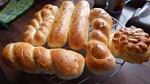 Krok 2: Necháme ho vykynout, pak propracujeme, rozdělíme na 4 díly a z každého uděláme bagetu. Po nakynutí bagetky potřeme vejcem, posypeme semínky a popř. nařízneme nožem.