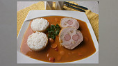Debrecínská pečeně, s párkem a slaninou, bude díky přípravě v pomalém hrnci krásně křehká a plná chuti. Plátky masa, podávané s omáčkou z výpeku a vařenou rýží, jsou ideálním nedělním obědem.