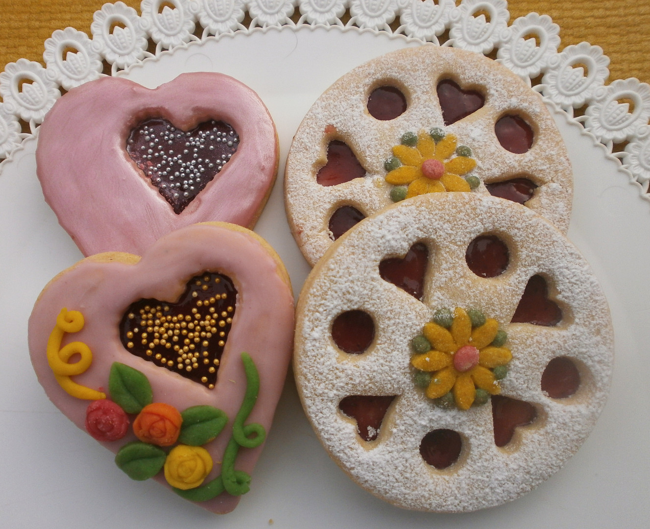 Krásné zdobená linecká srdíčka s marmeládou udělají radost nejen na svátek zamilovaných. Upečte je kdykoliv chcete někomu udělat radost, linecké cukroví nikdy nezklame. Z receptu můžete čerpat inspiraci na nápadité zdobení.