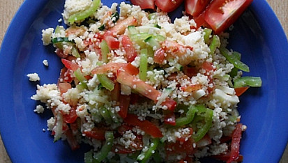 Tento zdravý salát připravíme během chvilky. Je plný čerstvé zeleniny a díky kuskusu je vydatný, takže ho můžeme podávat jako lehký oběd nebo večeři. Hotový kuskus jen promícháme se zeleninou a sýrem a je hotovo.