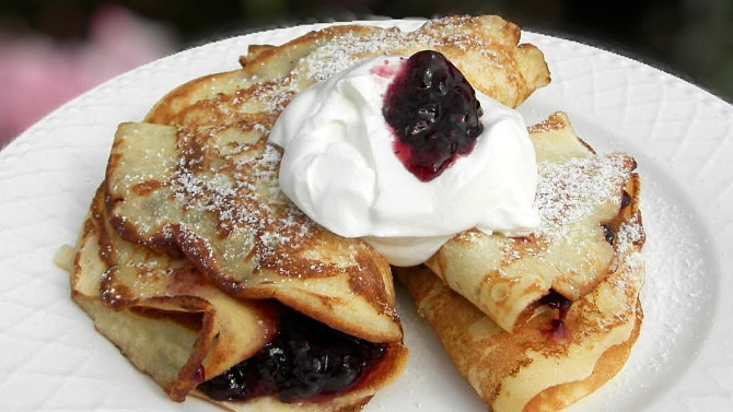Krok 4: Borůvky trochu rozvaříme s xylitolem a plníme do palačinek. Ozdobíme zakysanou smetanou a můžeme podávat.
