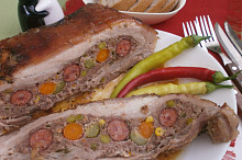 Plněný vepřový bůček s mletým masem a klobásou