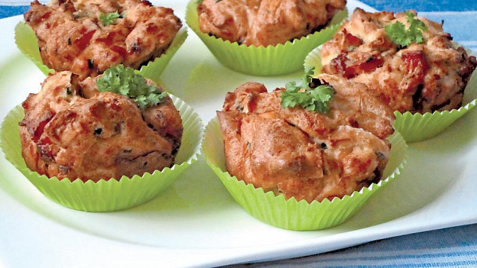 Krok 4: Formu na muffiny vymažeme sádlem, naplníme nádivkou a pečeme asi 30 minut při 180 °C dozlatova.