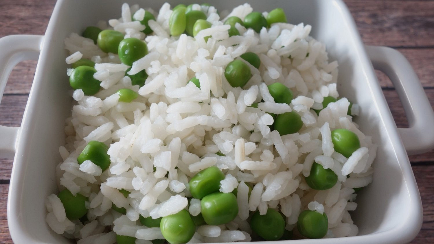 Pokud už vás nebaví klasická dušená rýže, vyzkoušejte variantu s mraženým hráškem. Hrášek v každém soustu příjemně křupne a dodá další chuť a texturu této oblíbené příloze. V rýži je navíc orestovaná cibulka, která dodá šmrnc.