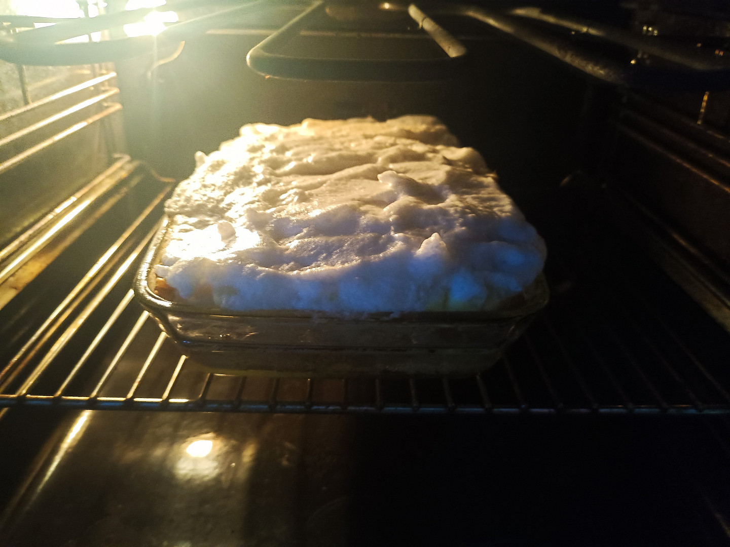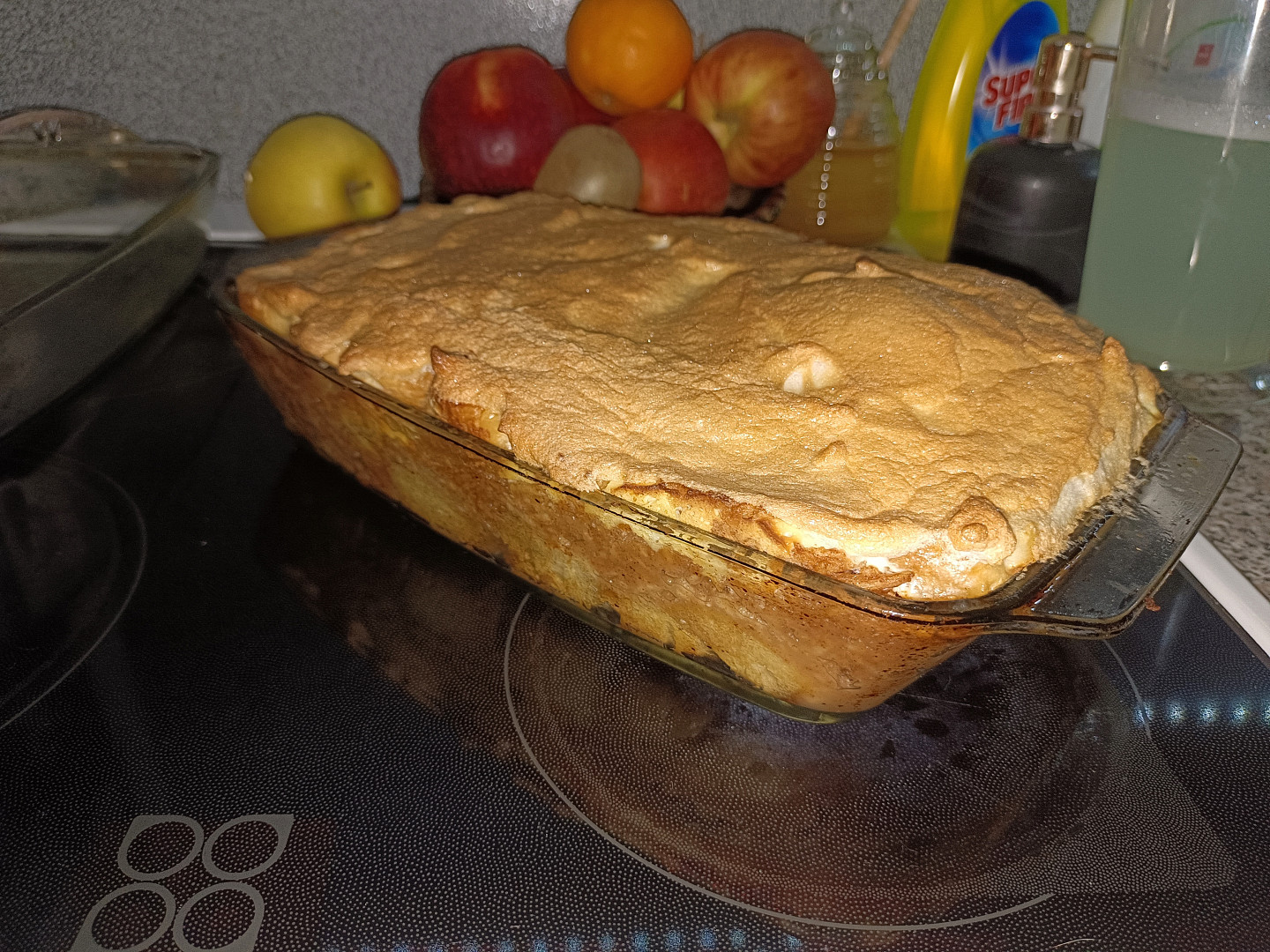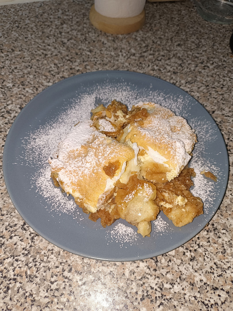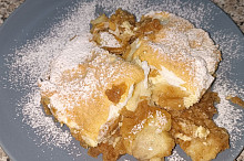 Porcovaná žemlovka s jablky a tvarohem, zapečená se sněhem