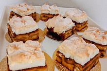 Porcovaná žemlovka s jablky a tvarohem, zapečená se sněhem