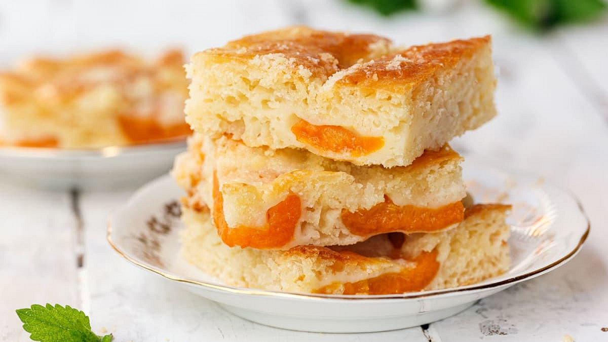 Vláčný meruňkový koláč ze zakysané smetany s drobenkou