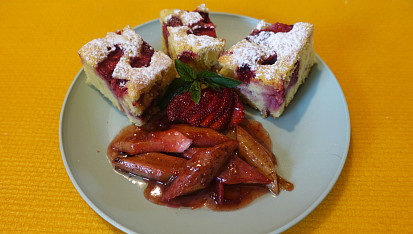 Jahodovo-rebarborová bublanina s rebarborovou přílohou