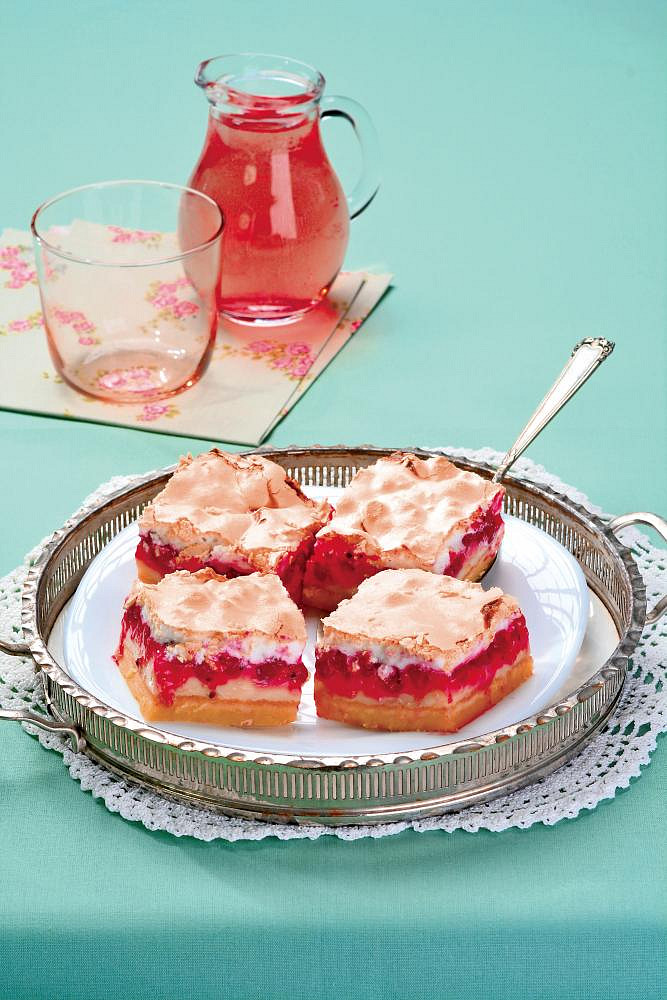 Křehké řezy s pudinkovou náplní, rybízem a bílkovým sněhem na povrchu si zajisté zamilujete. Moučník s lahodnou náplní kombinující sladký pudink a kyselkavý rybíz s lehkým sněhem potěší všechny vaše chuťové smysly.