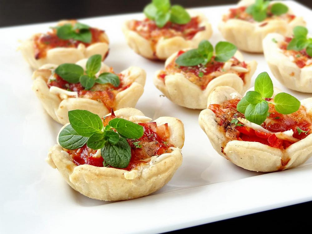 Krok 9: Nakonec pizza košíčky vyjmeme z formiček, ozdobíme snítkou čerstvého oregana a ještě vlažné podáváme.
